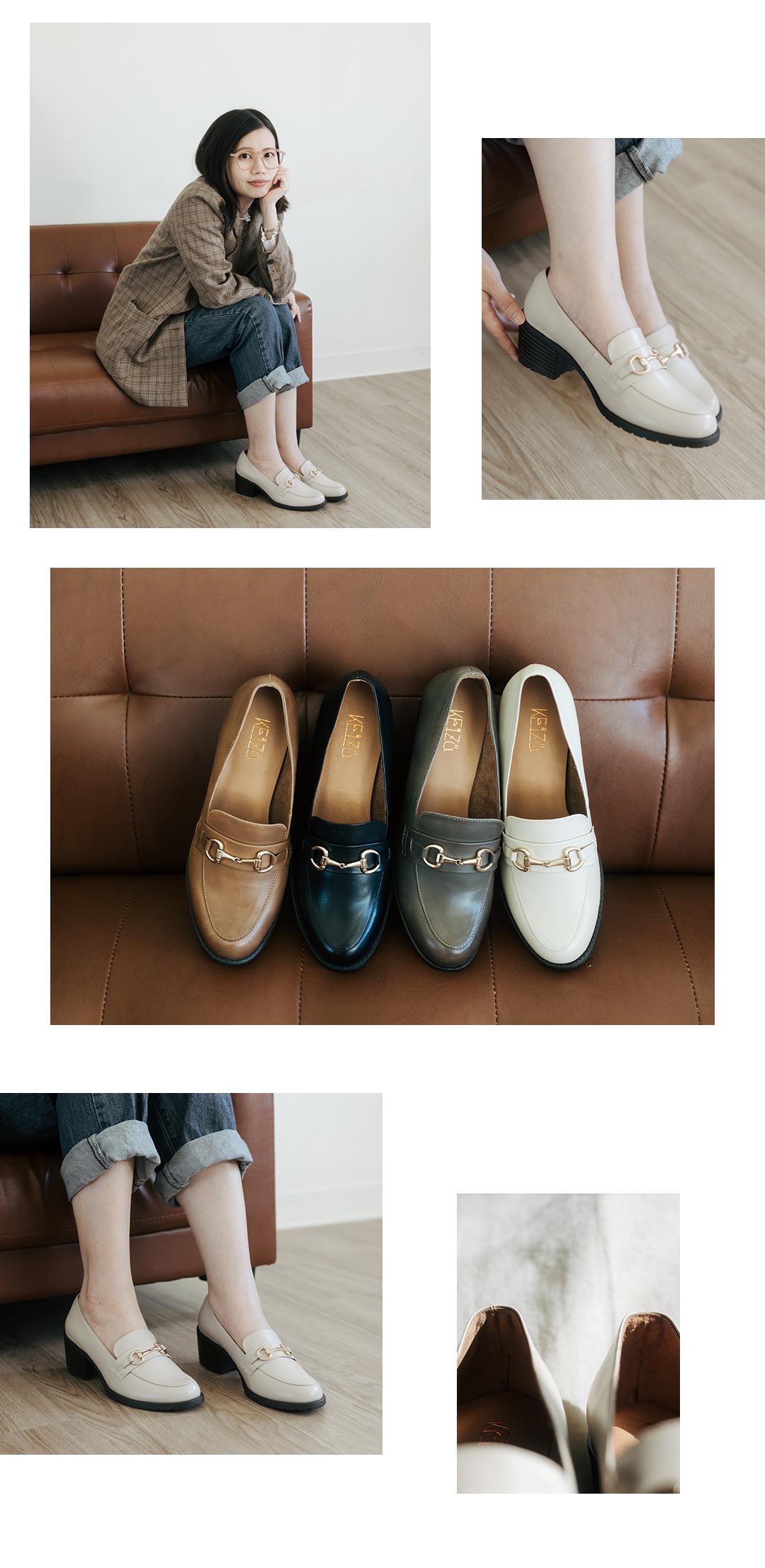 商品特色: ‧ 全真皮 進口牛皮 ‧ 跟高3.5cm ‧ 台灣手工製造 ‧ 全顏色:灰● 棕● 米● ‧ 小編試穿心得:版型正常,建議拿平常穿的尺寸。;若會搭配襪子,建議拿大半號。