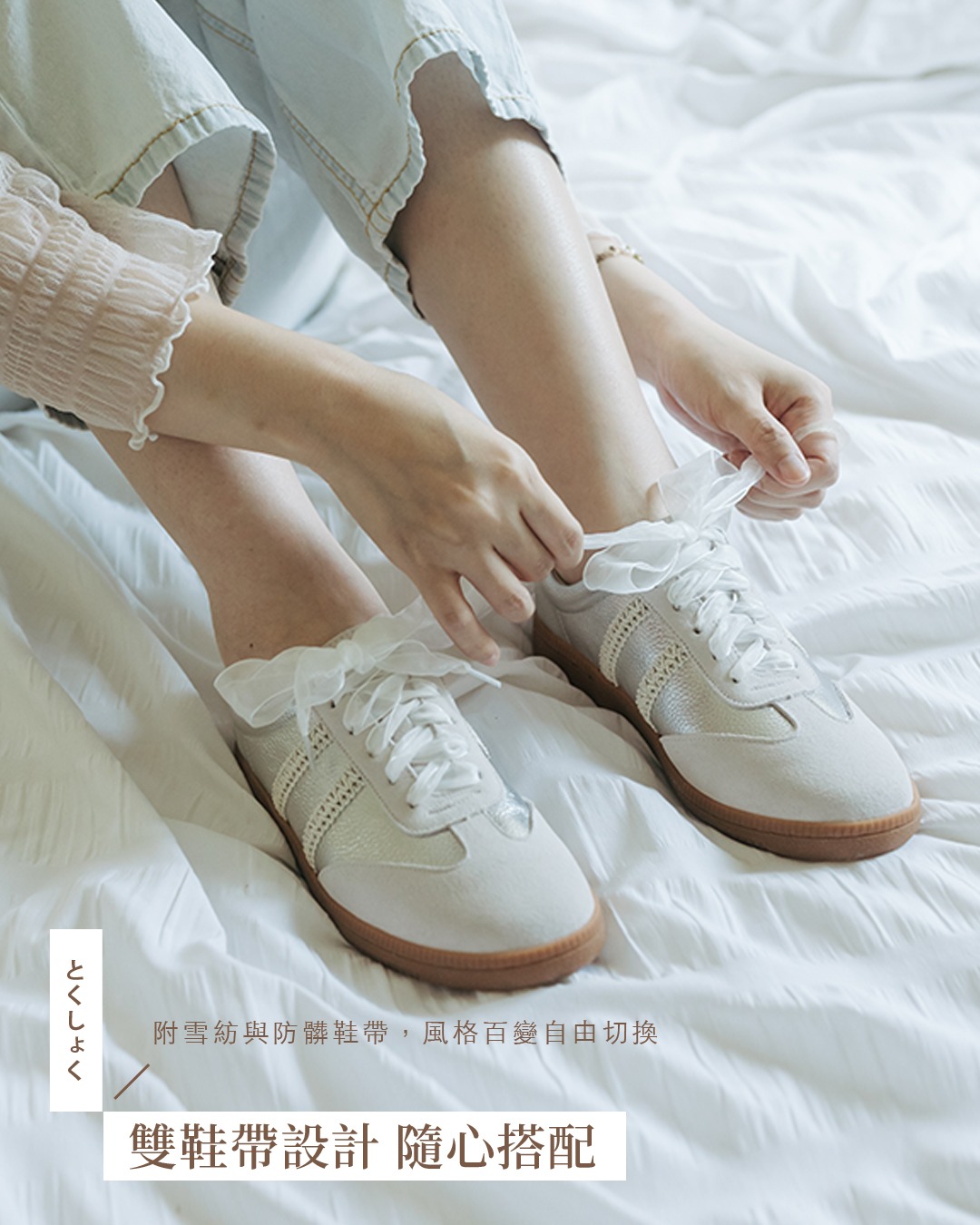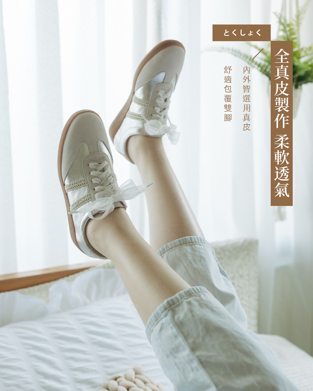 商品特色: ‧ 鞋面牛皮材質 ‧ 豚皮乳膠鞋墊 ‧ 綁帶設計,好穿脫 ‧ 台灣本地手工製造 ‧ 附兩種鞋帶:網紗緞帶、一般白鞋帶。 ‧ 小編試穿心得:版型正常,建議拿平常穿鞋尺碼。