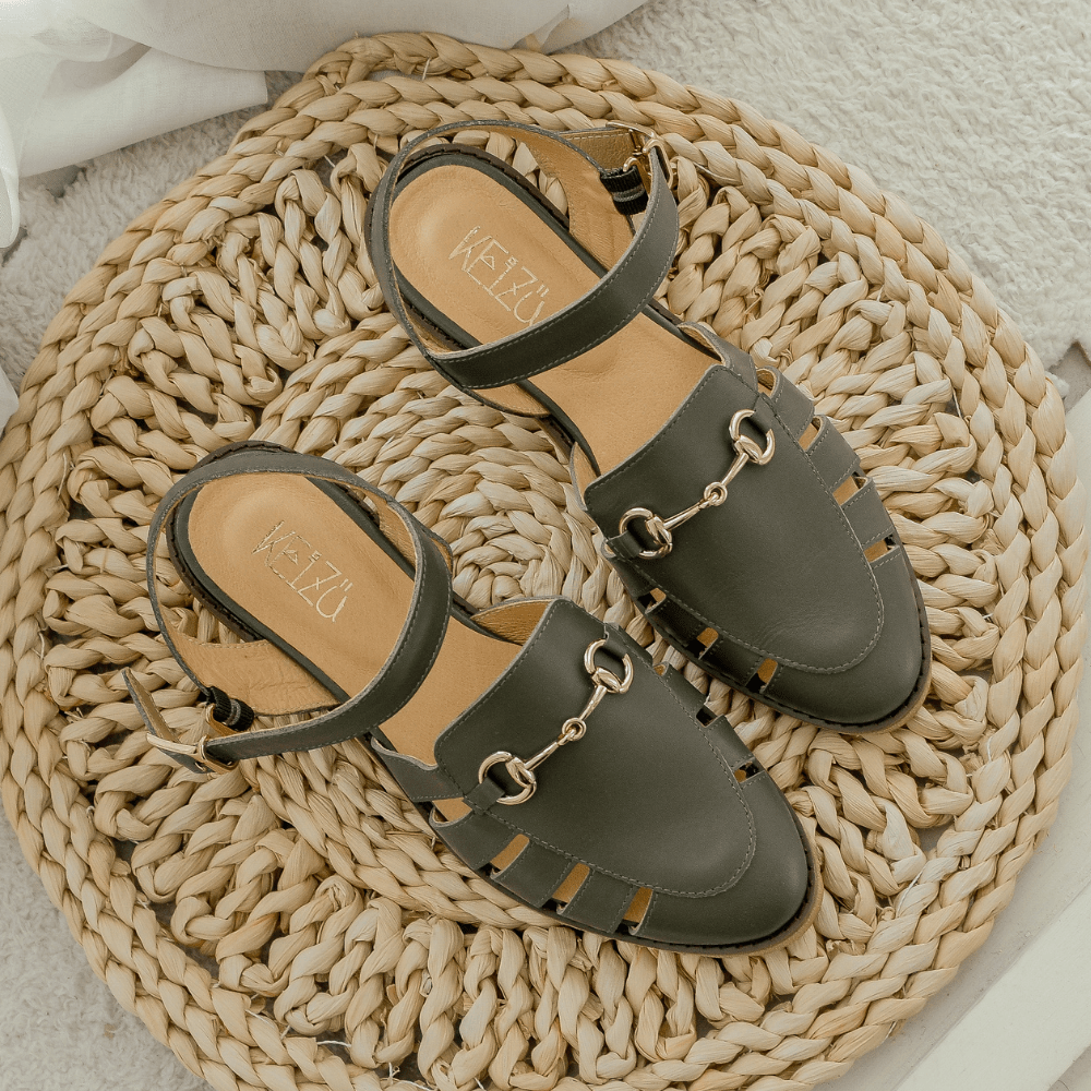 商品特色: ‧ 牛皮材質 ‧ 真皮鞋墊 ‧ S釦設計,好穿脫 ‧ 台灣本地手工製造 ‧ 全顏色:綠● 米白● ‧ 小編試穿心得:版型正常,建議拿平常穿鞋尺碼