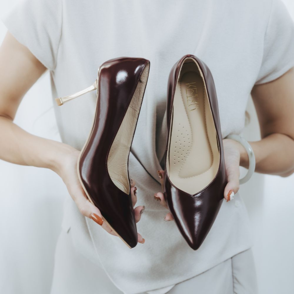 Élise獨立之心∥7cm油皮金屬超穩跟∥酒紅