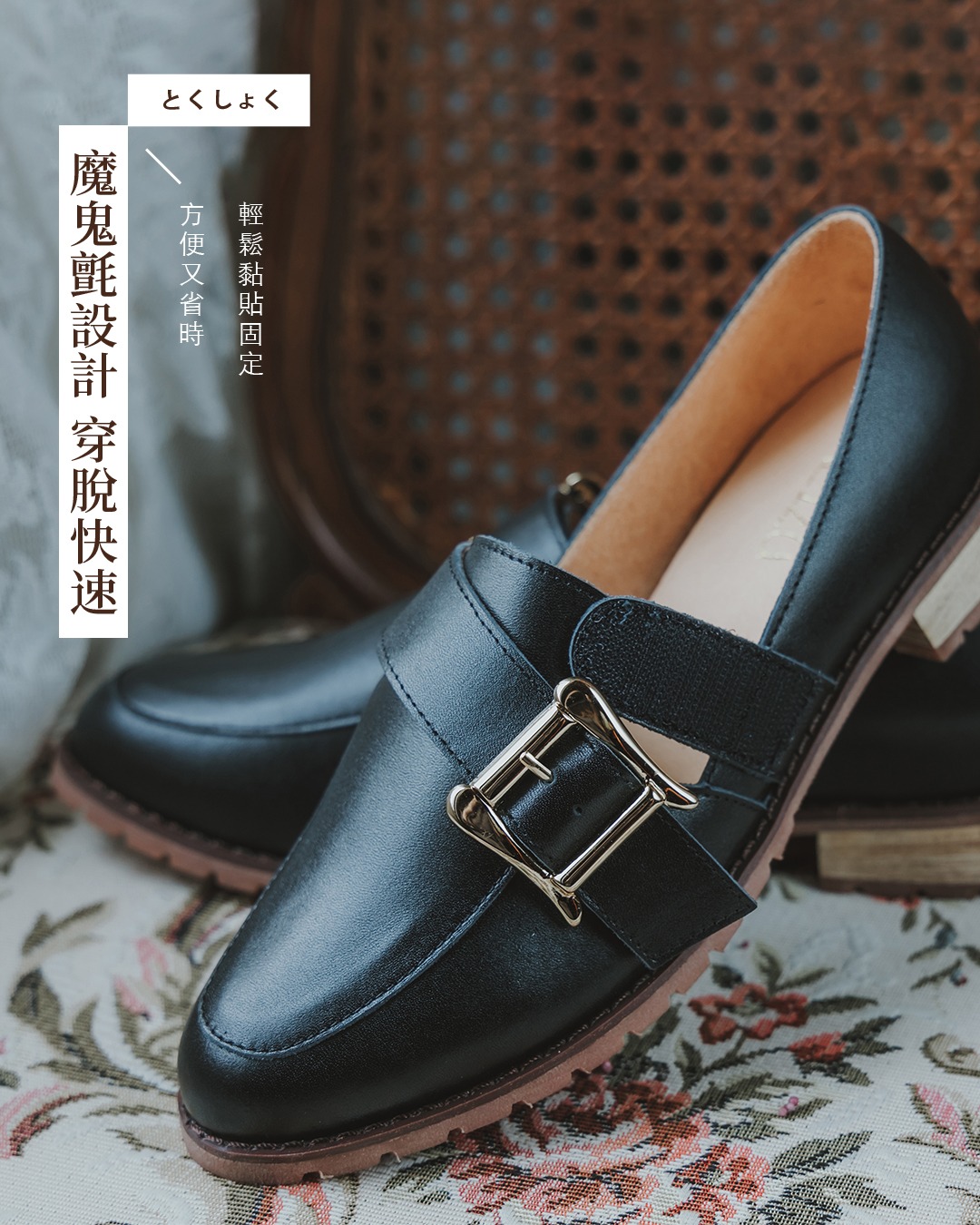 商品特色: ‧ 全真皮材質 ‧ 魔鬼氈設計 方便調整腳背高度 ‧ 防滑PVC底 ‧ 台灣手工製造 ‧ 全顏色:黑● 酒紅● 棕● 綠● 米白● ‧ 小編試穿心得:版型正常,建議選購平常穿鞋尺碼