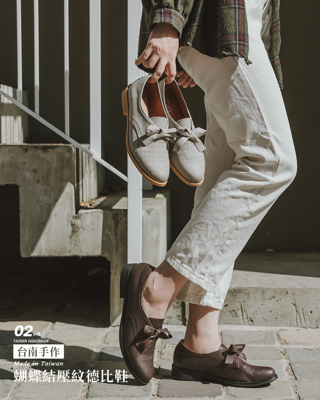 蝴蝶結壓紋德比鞋∥咖啡