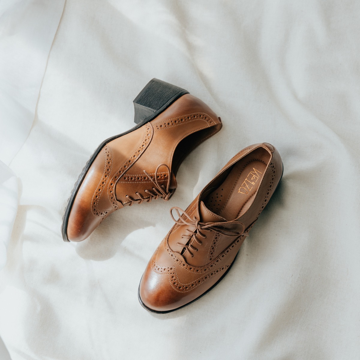 波隆那街角∥五公分雕花牛津跟鞋∥棕