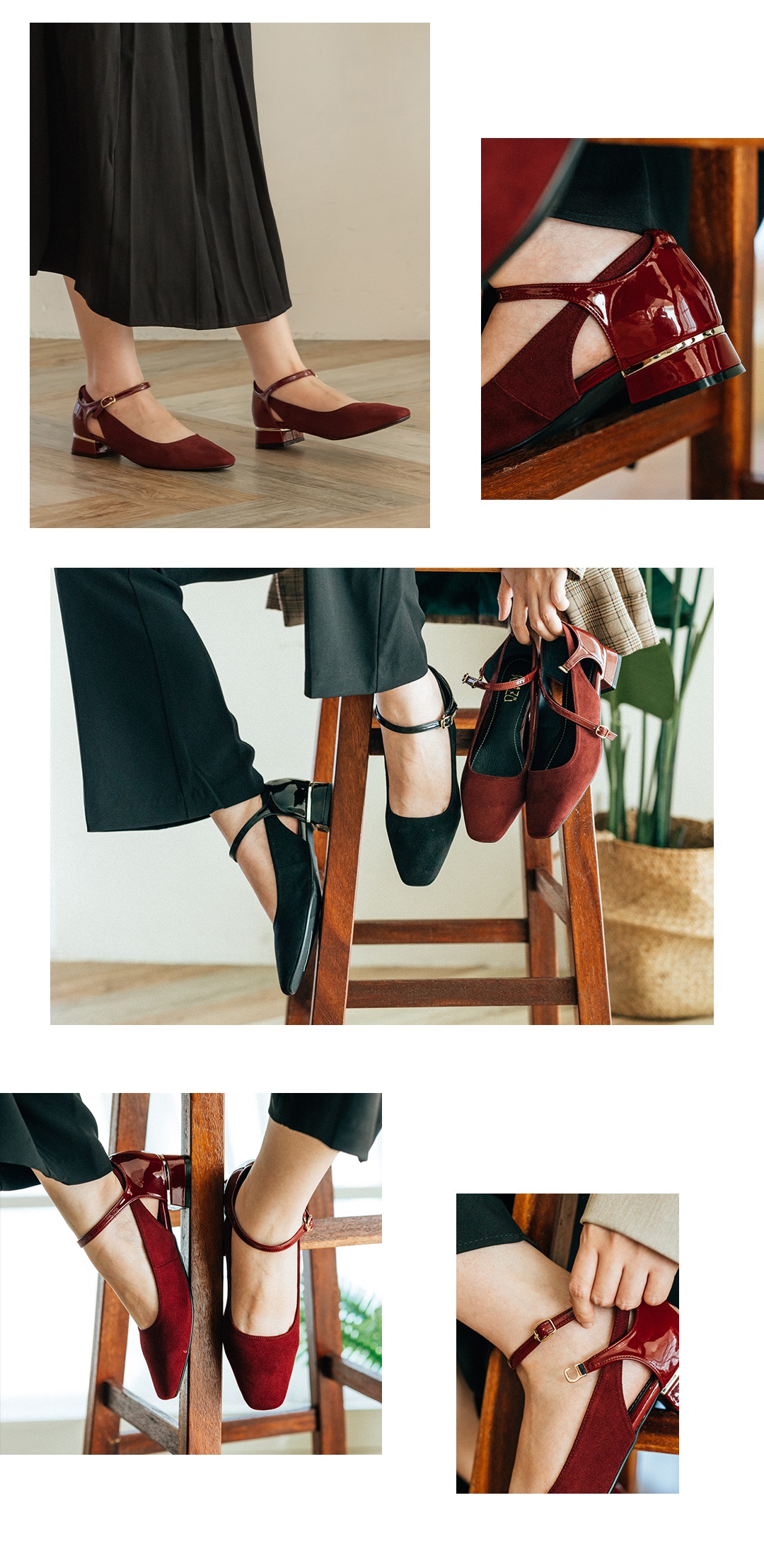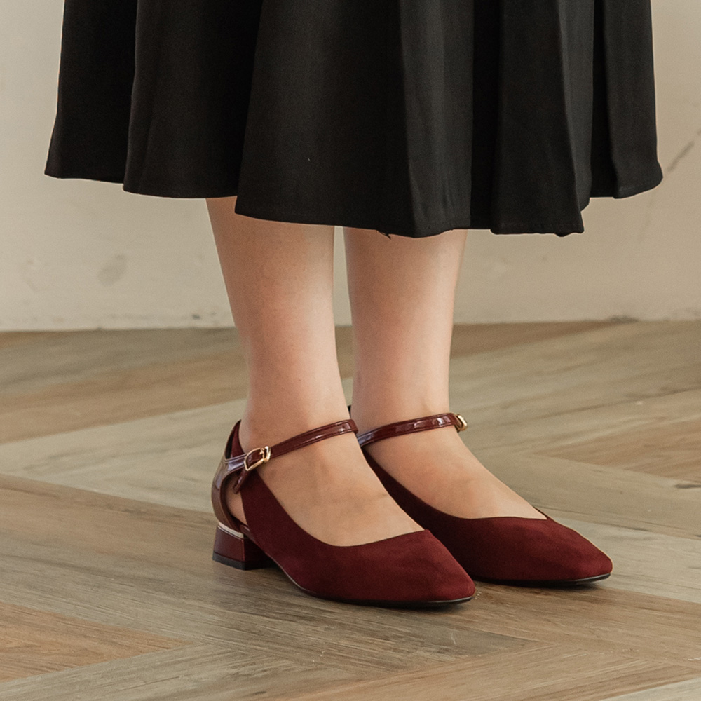 Velour Line 微醺絨光∥拼接繫帶瑪莉珍鞋∥酒紅絨