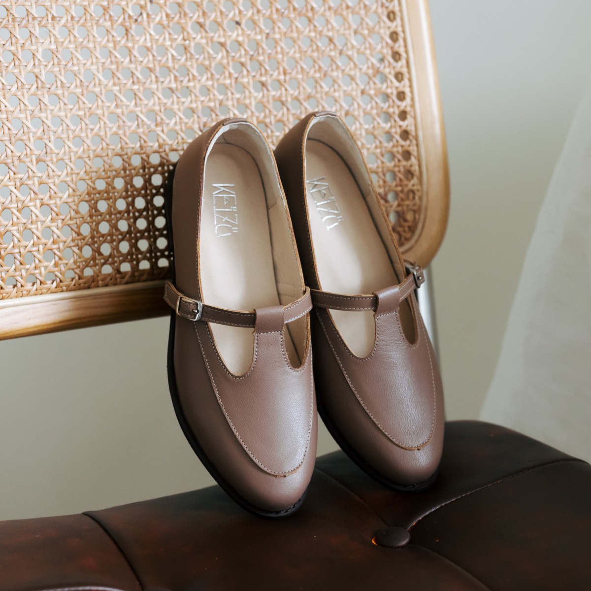 法式書苑∥真皮T字樂福鞋∥棕