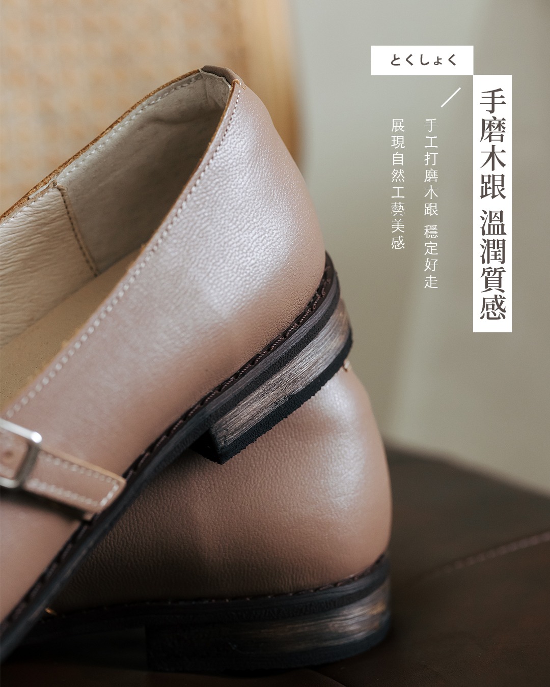 商品特色: ‧ 進口歐洲珍珠牛皮 ‧ 雙層乳膠鞋墊 ‧ 實木木跟 ‧ 台灣手工製造 ‧ 小編試穿心得:版型正常,建議選擇平常穿鞋尺碼。寬肉腳請拿大半號。