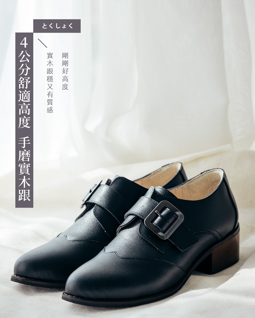 時光旅行∥四公分魔鬼氈牛津木跟真皮踝靴∥裸粉