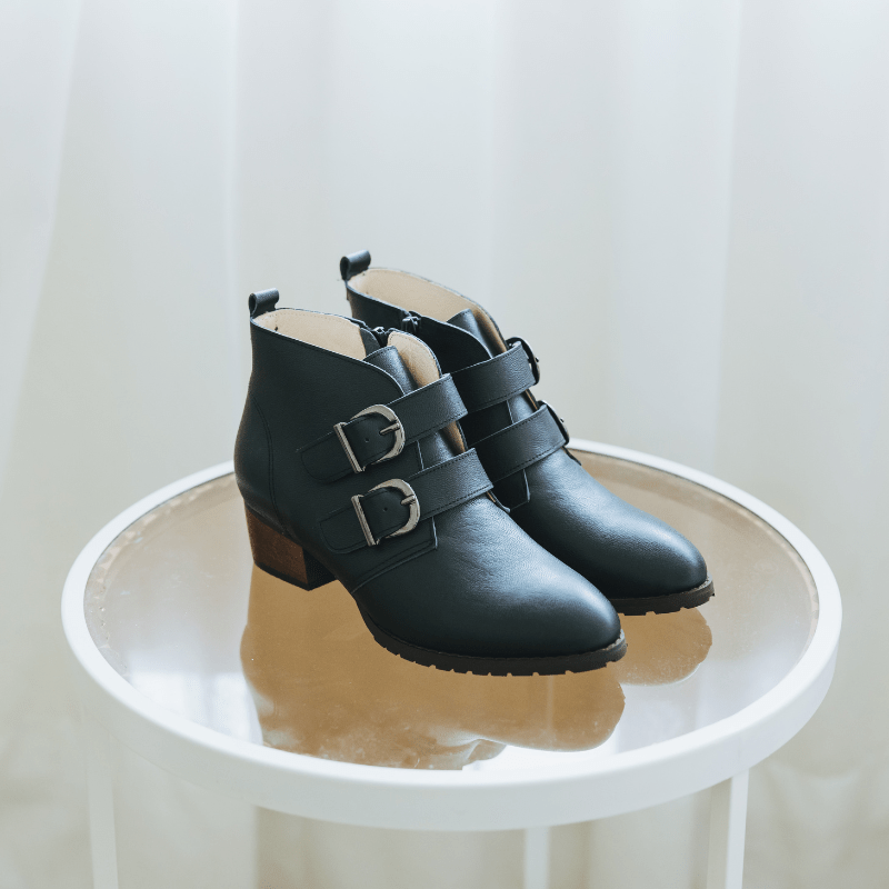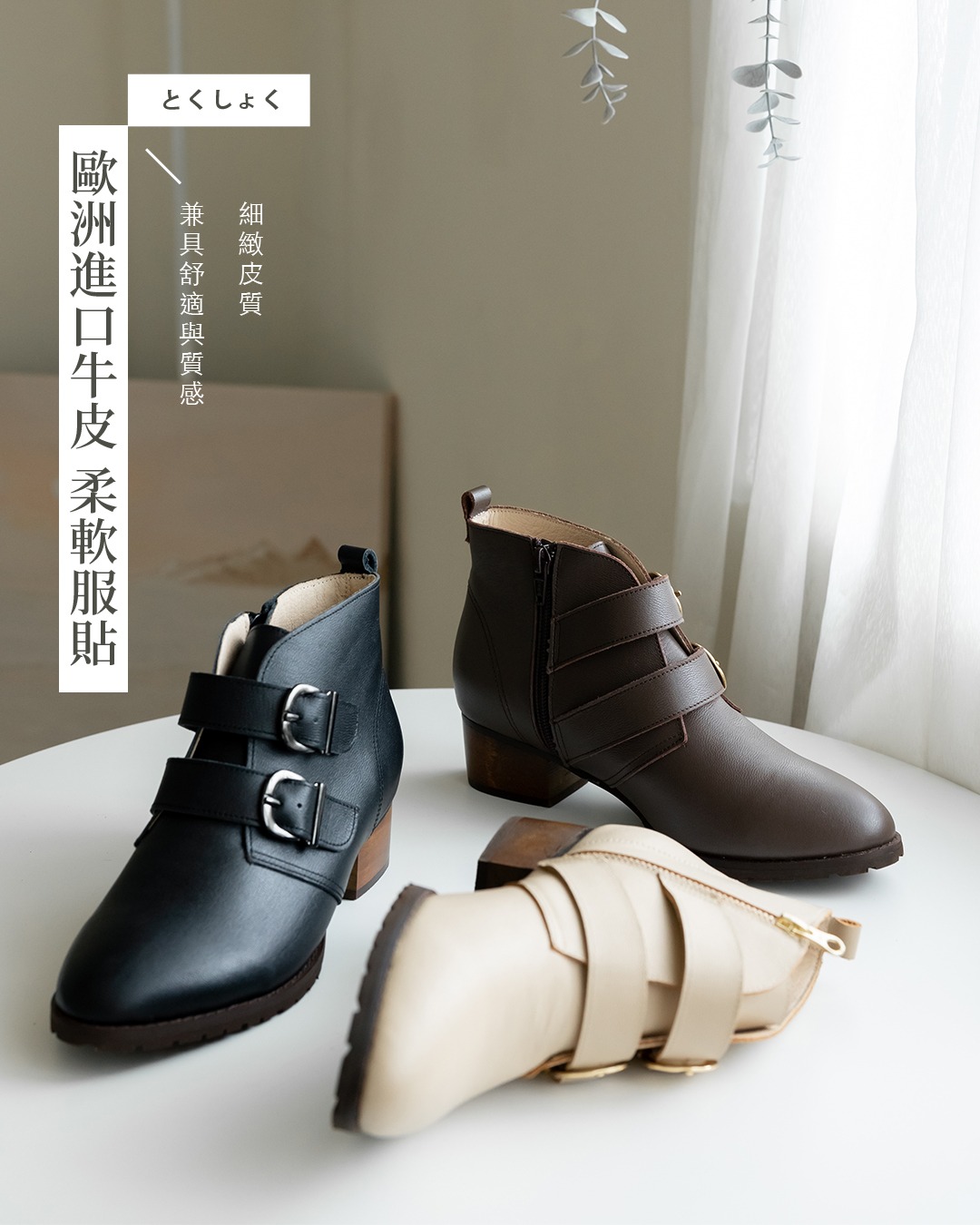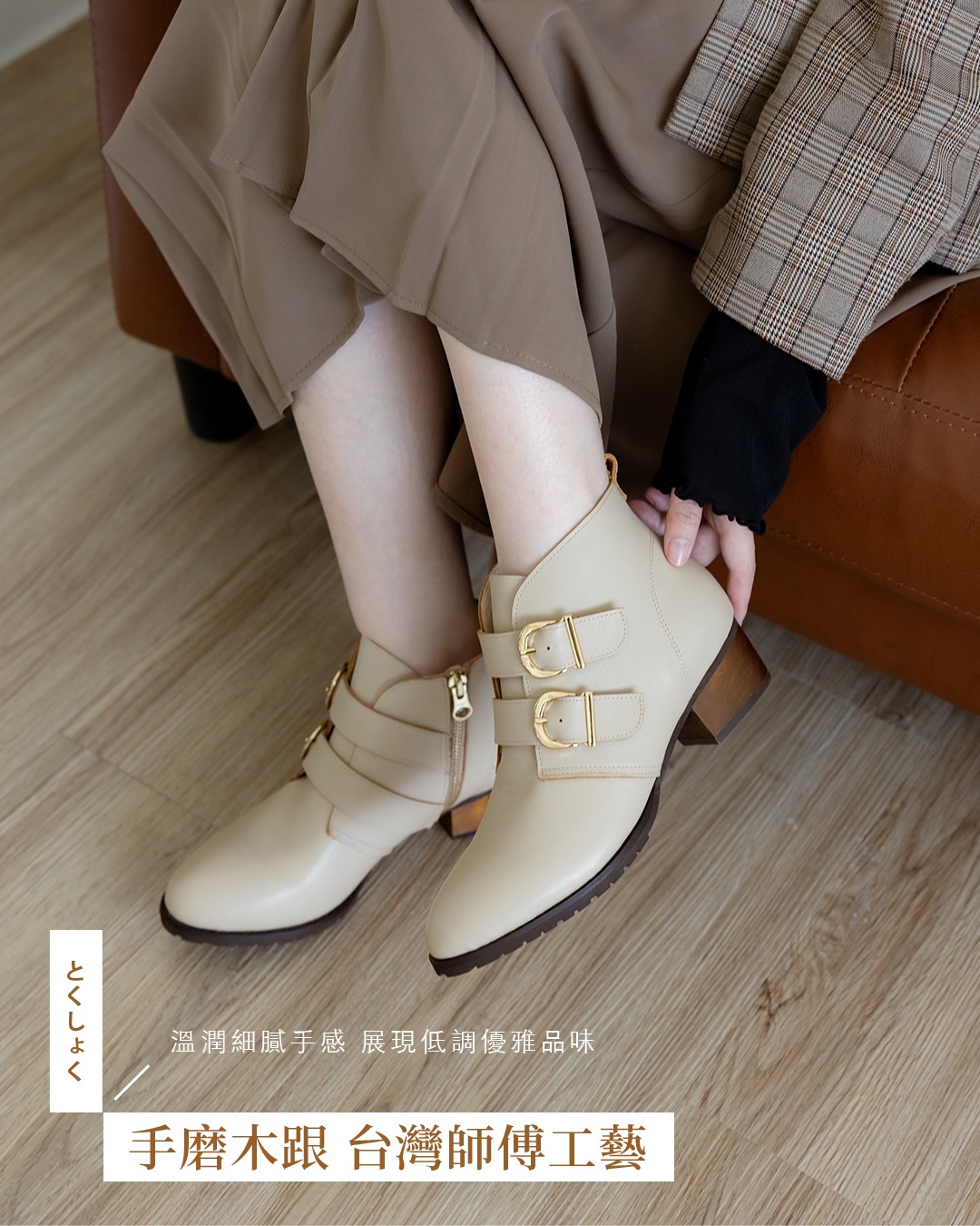 商品特色: ‧ 全真皮 進口牛皮 ‧ 手磨木跟 ‧ 台灣手工製造 ‧ 全顏色:黑● 米白● ‧ 小編試穿心得:版型正常;若搭配厚襪子穿著,建議拿大半號。;寬腳高腳背者,建議拿大半號。