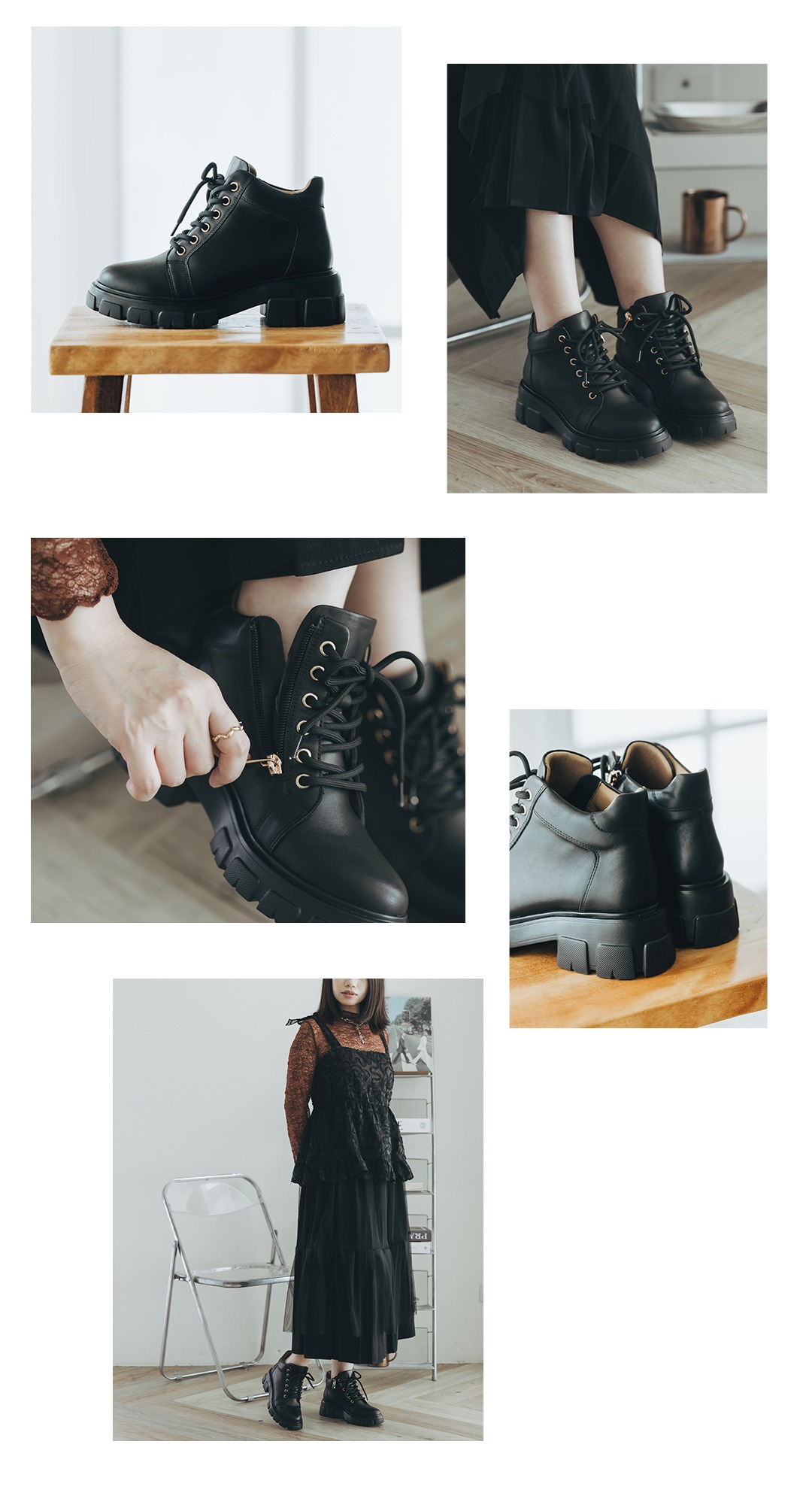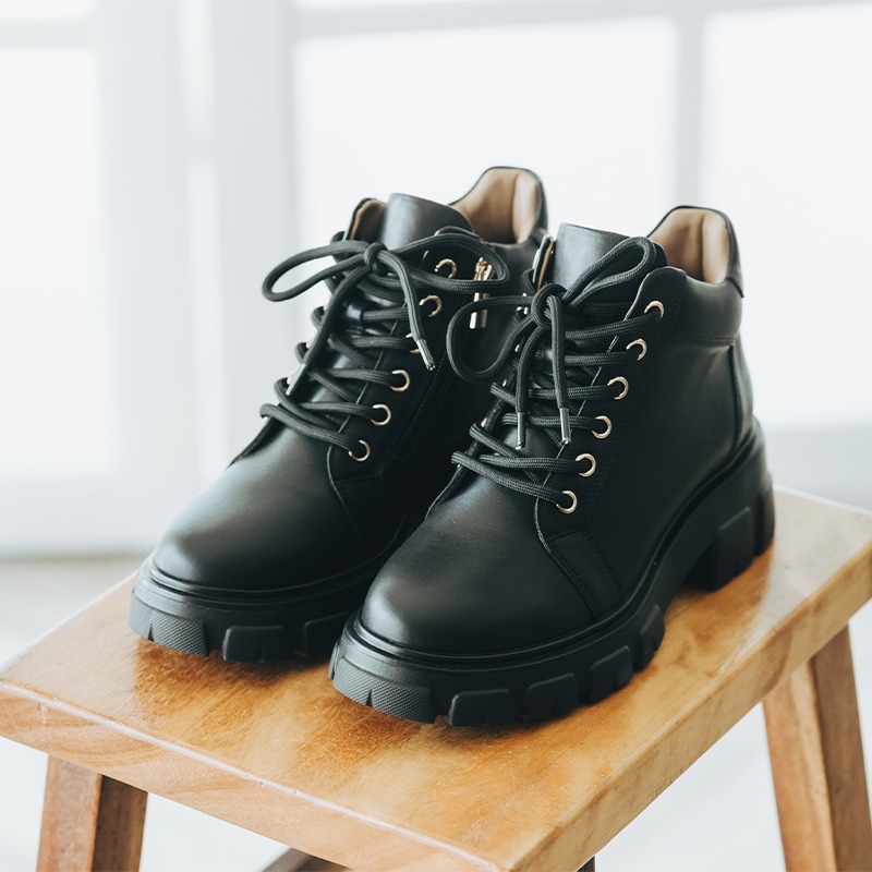 商品特色: ‧ 鞋面 天然牛皮 材質 ‧ 豚皮乳膠鞋墊 ‧ 綁帶設計,可自行調整鬆緊 ‧ 鞋跟高:前掌區3公分,後跟5公分 ‧ 台灣本地手工製造 ‧ 全顏色:全黑● ‧ 小編試穿心得:版型偏小,請拿大半號。寬肉腳請拿大兩號