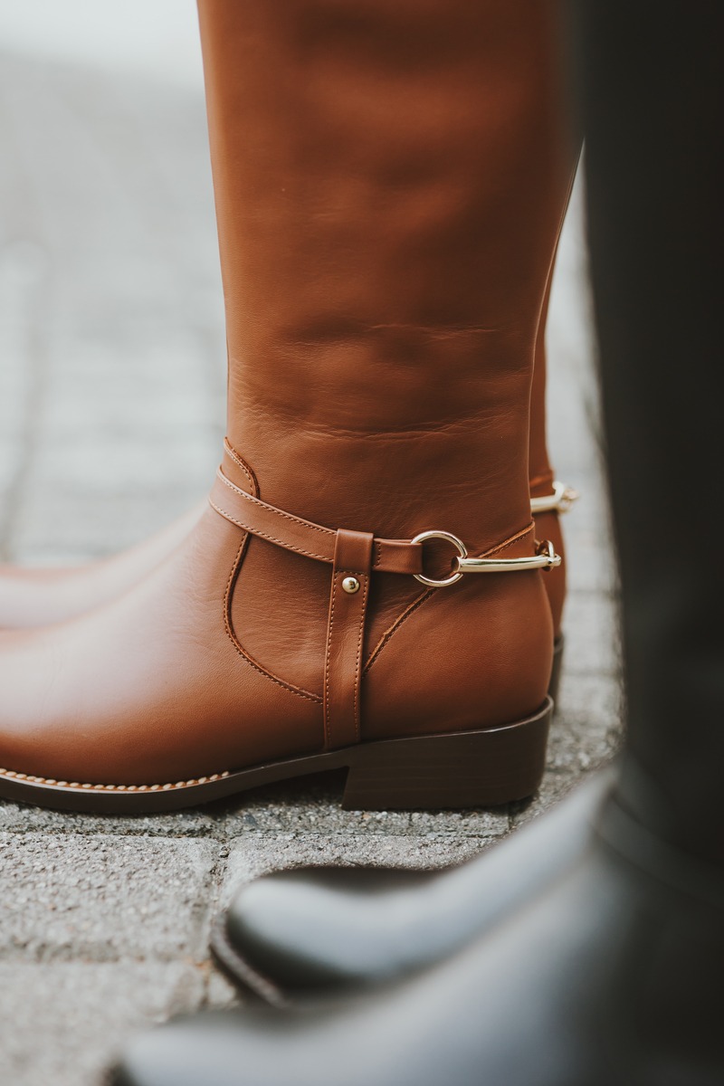 搶先評價 “【限定優惠】台南手作.率性飾釦 真皮平底長靴∥棕”