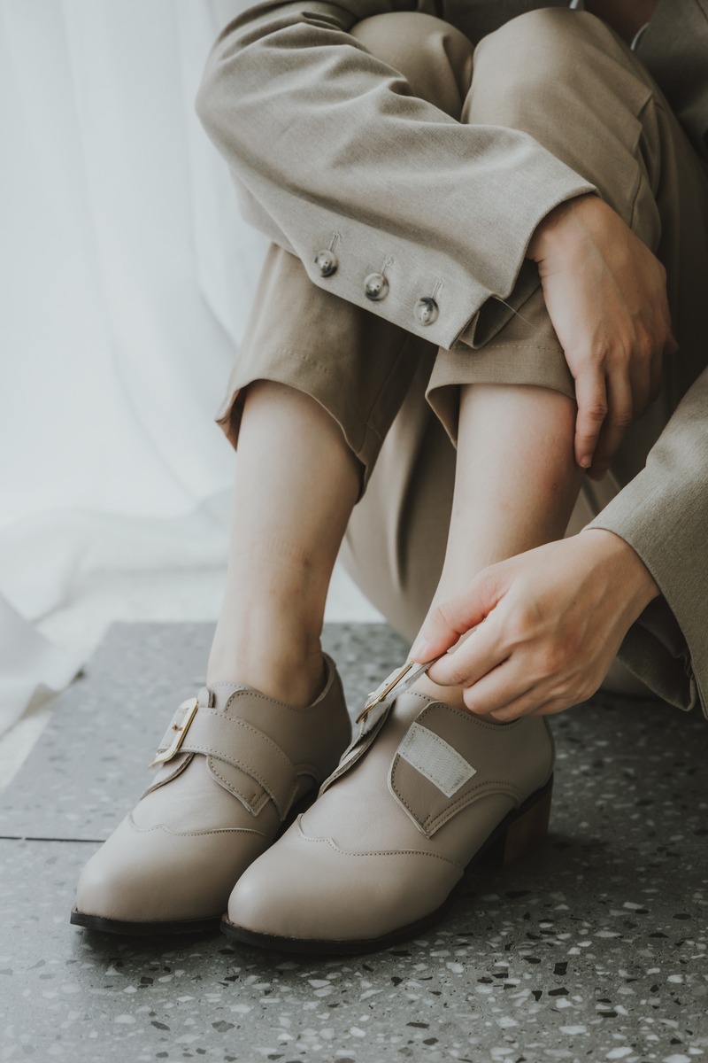時光旅行∥四公分魔鬼氈牛津木跟真皮踝靴∥灰